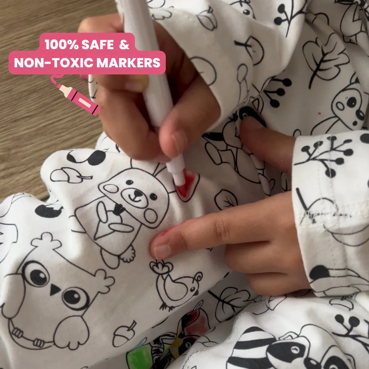 Machen Sie die Schlafenszeit zu einem magischen und kreativen Erlebnis, bei dem Ihr Kind einen kuscheligen und farbenfrohen Schlafanzug bekommt.