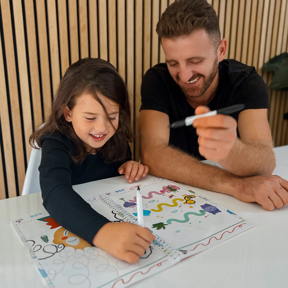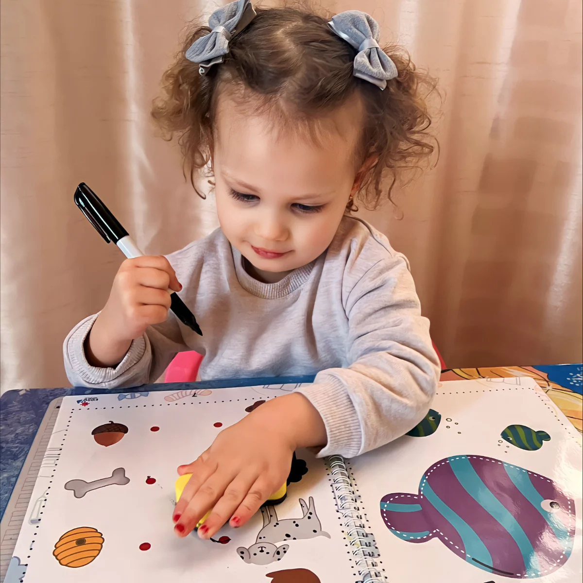 Unsere 10 Monate alte Tochter hat sich in dieses Malbuch verliebt! Besonders gern malt sie die Blumen, und wir finden es toll, dass wir dafür keine Stifte brauchen. Perfekt fürs Auto oder zum Spielen zu Hause!