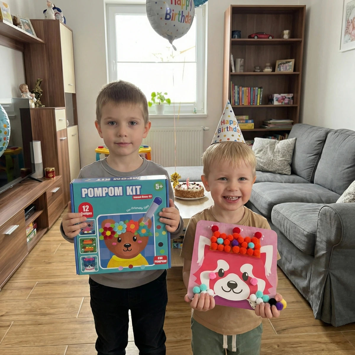 ✔ 3D creative play set with animals and pom poms for easy and safe crafting