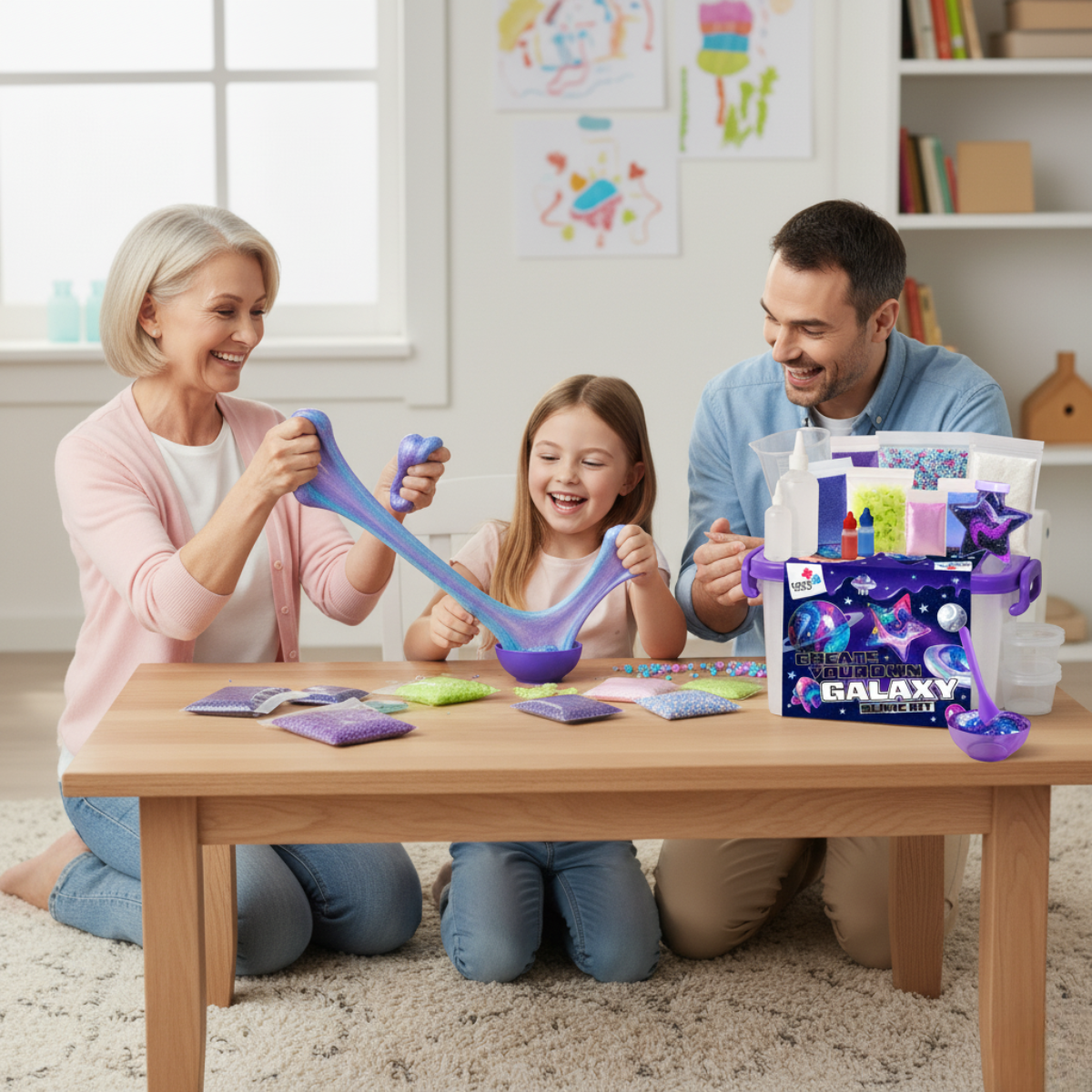 The Galaxy Slime Kit is fantastic! Kids are thrilled to mix colors, glitter, and accessories, creating their unique galaxy. The slime is soft, pleasant to touch, and non-sticky. Parents love that the kit is non-toxic, safe, and mess-free. Perfect for creative afternoons or family play!