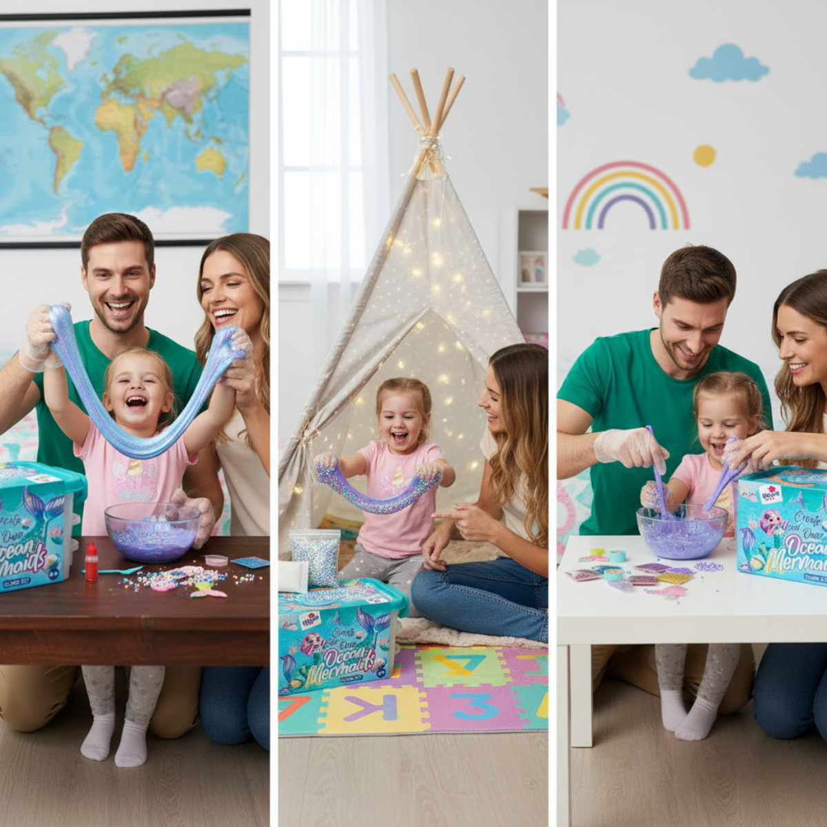 Are you ready for a burst of colors and ocean magic? 🧜♀️✨ With the Ocean Mermaids Slime Kit, kids can create soft, stretchable, sparkling slime in ocean shades! 🌊 Perfect for little mermaid creators and imaginative artists – free from harmful chemicals and completely worry-free for parents!